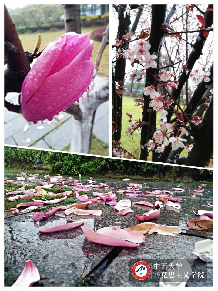 行进到新校教学楼路段,大家不禁赞叹着新校的美景,有的留步欣赏路两旁艳丽的茶花,有的赞叹新校图书馆的巍峨壮丽,有的对落在地上沾满雨珠的广玉兰花瓣感到惋惜。想来平日里各位同志工作忙忙碌碌,即便是走在校园,也多半公务、教务在身,难得有心思去感受身边的春光美景,花虫鸟木,而今天借着活动的机会,每位同志放下忙碌和疲惫,在共赏美景时,也增进了彼此间的情谊,煞是惬意。