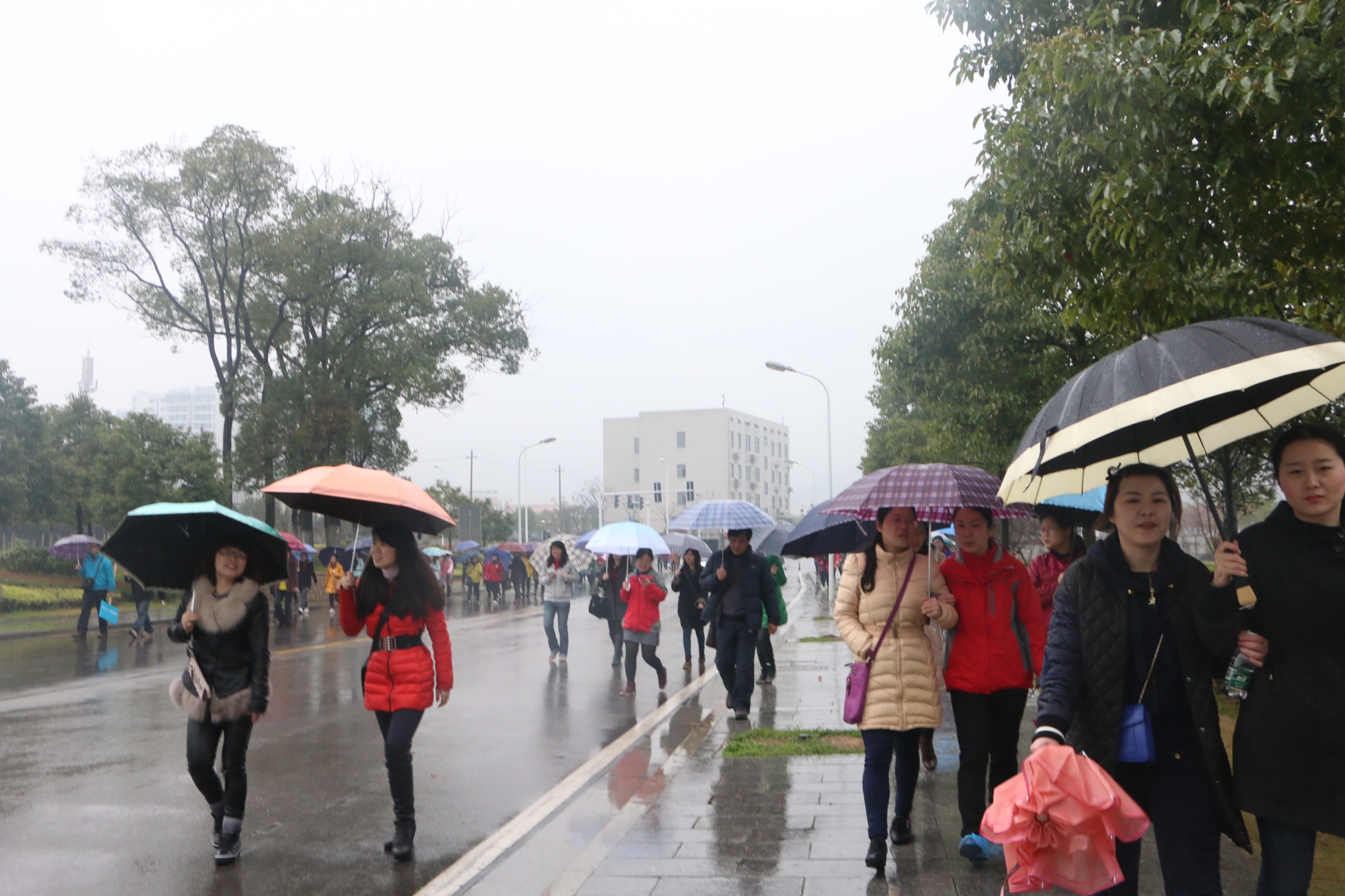15日上午长沙阴雨不断,来自我校各学院的女教师们冒雨在新校区体育馆准时集合。上午9点30分,随着一声令下,活动正式开始。参加比赛的老师们有的撑着雨伞,有的穿着雨衣,三三两两说说笑笑的从新校体育场出发,途经过机电楼、tapplay官网图书馆、建艺院,到达新校大门,随后折返经过A座、外语院,又回到体育场。
