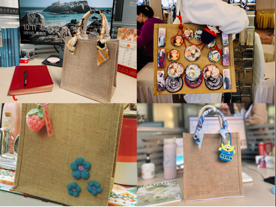 出版社工会在3月8日当天为每位女职工准备了一份纪念品,普通的小麻袋在心灵手巧的女职工们手中变成了一个个做工精美、赏心悦目的专属小包包。