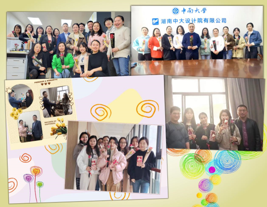 一早,在工会的策划组织下,各部门领导或男同胞代表向奋战在工作岗位上的女员工们送上鲜花和礼物,并向她们致以节日的问候和诚挚的祝福,感谢她们以乐观向上的人生态度、恪尽职守的工作作风、不畏困境的坚韧品质,在平凡中坚守,在坚守中绽放,在各自岗位上演绎着中大设计人的精彩,诠释着勘察设计领域的巾帼力量!