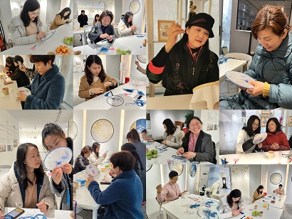 时间在巧手引丝线之中飞快溜走,不知不觉大家竟然绣了三个小时了!而此时手中的绣品还只完成了十分之一不到。周老师说,即便是绣娘也要绣一天时间才能完成我们手中团扇大小的作品。大家纷纷表示,回去花一个月时间,慢慢绣完,到时候再拍照上传到群里,让大家欣赏。