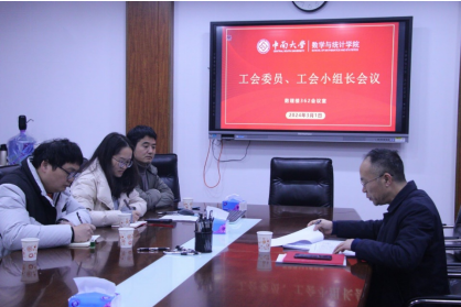 3月1日上午8:30,数学与统计学院在数理楼362会议室召开新学期工会委员及小组长会议,总结2023年工作,研究新学期工作计划,部署近期重要事宜。学院全体工会委员、工会小组长参加会议,学院党委副书记、工会主席杨雪宾主持会议。