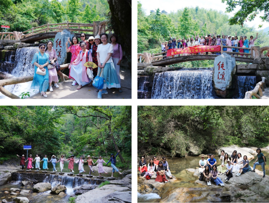 “无限残红著地飞,溪头烟树翠相围”,游园途中,机电院女职工们热情高涨,结伴而行,步行在景区的各个风景优美处打卡,沐浴着晚春的阳光,呼吸着新鲜的空气,感受着大自然的无限魅力。特别是沿途接二连三的小瀑布和戏水平台,让女工们仿佛置身于仙境之中,感受清凉的水雾,享受清凉解暑的乐趣,山谷间时而回荡着老师们爽朗的笑声。