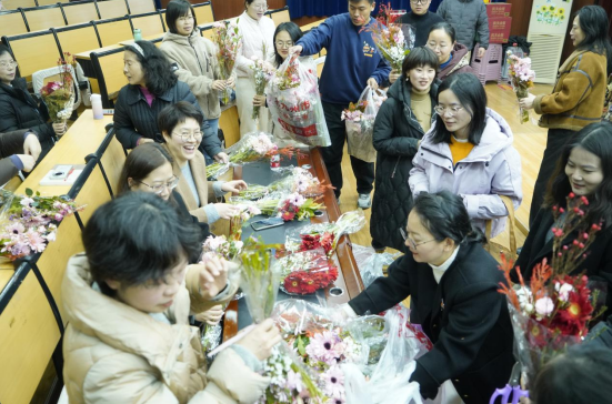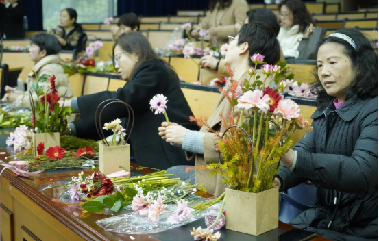 星城春来,花香四溢。为庆祝第 115个“三八”国际劳动妇女节,丰富院教职工的精神文化生活,提升教职工的艺术修养和生活情趣,人文学院于3月5日下午在222多媒体报告厅举办了“三八”国际劳动妇女节插花主题活动。
