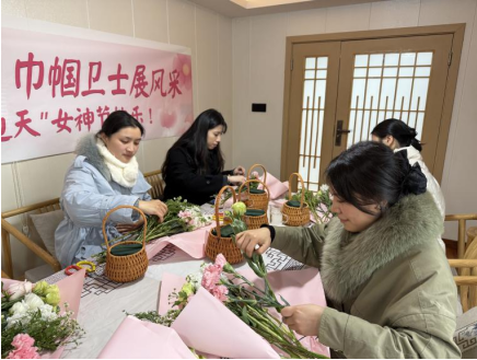 为迎接第115个“三八”国际劳动妇女节,进一步丰富女职工精神文化生活,3月7日中午,保卫部举办“守护校园绽芳华·巾帼卫士展风采”主题插花活动。