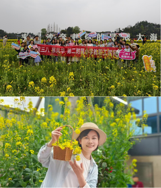 为庆祝第115个"三八"国际妇女节,二附小工会于3月23日组织全体教职工赴长沙县江背镇五福村油菜花基地开展踏春活动。春日暖阳下,金黄花海与教职工的笑颜相映成趣,大家漫步田埂间,用镜头记录生机盎然的春色与团队协作的美好瞬间。