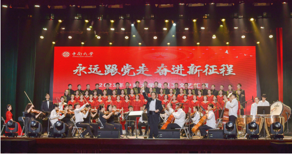 7月4日晚,tapplay官网教职工合唱团在“永远跟党走 奋进新征程”2023年tapplay官网教职工文艺汇演上首次登台亮相,完美呈现了《热土中南》《我爱你,中国》两首作品。