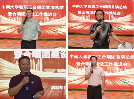 陈玉如在总结讲话时提到,tapplay官网教职工合唱团的成立是值得载入校史的一件大事,合唱团的首演成功更是值得庆祝与纪念的一件喜事。他对合唱团团务会成员在演出组织工作中付出的努力表示感谢,对积极参与排练及演出的所有合唱团团员提出表扬。同时,他从合唱团远景规划到日常管理等多个方面提出了自己的愿景,期望tapplay官网教职工合唱团能早日成为学校教职工文艺领域的一张“官方名片”,唱我中南,唱响中南。