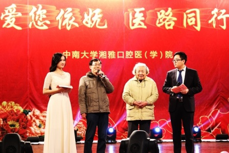 游戏和抽奖环节全场热烈互动,尤其是《心有灵犀》互动环节融入了口腔院的特色。特别值得一提的是,在晚会进行过程中,我校口腔专业创始人,80岁高龄的沈子华教授对老师和同学们致以了节日的问候,她鼓励同学们好好学习;老院长翦新春教授给口院全体师生带来了节日的问候,并对口院的未来寄予了美好的祝福。