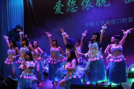 随着护理部热情的草裙舞上演,晚会被推向了高潮。师生们纷纷登台表演,以萨克斯伴舞、独唱、相声、小品、群舞、合唱等多种多样的艺术形式,展现了湘雅口腔医(学)院师生多才多艺的青春风采和积极向上的精神面貌。