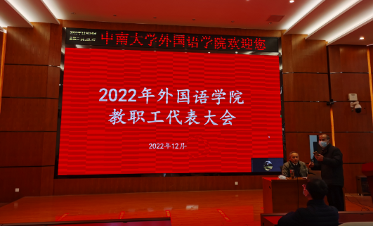12月16日下午,外国语学院工会召开2022年度教职工代表大会。学院教代会正式代表、列席代表、特邀代表参加了会议。会上,学院党委书记陈广程作《学院工作报告》,院长李清平作《年终绩效分配方案报告》。