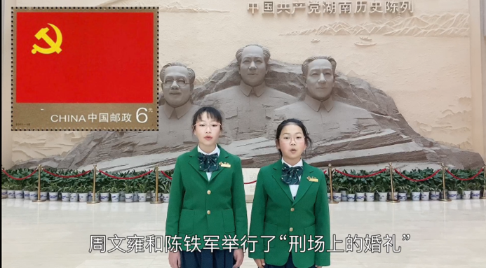 寒假社会实践课程开展以来 ,同学们踊跃参加 “邮票上的今天”主题课程视频讲演活动。开国大将肖劲光120周年诞辰日,同学们打卡肖劲光故居,探寻中国海军崛起之旅;《义勇军进行曲》诞生88周年纪念日,同学们寻访田汉故居,了解国歌创作背后的故事……今天,麓枫少年邮局高泓玥和刘雨欣同学带同学们走进党史陈列馆,从一张党旗邮票上,重温党史上的2月6日发生的一个故事——《刑场上的婚礼》。