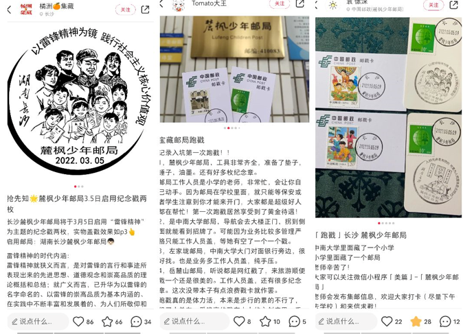 “小红书”平台 大量网友记录打卡麓枫少年邮局“雷锋戳”