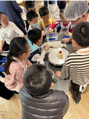 活动当天,工作人员为小朋友们发放原材料和制作工具,烘焙师耐心地给小朋友和家长们讲解蛋糕烘焙的相关知识和注意事项,展示蛋糕制作的基本过程。接着,孩子们在家长和烘焙师的点拨下,充分发挥自己的创意,开始着手奶油裱花、水果装饰等流程。活动现场欢声笑语不断,一个个充满创意的小蛋糕在孩子与父母的亲密合作中新鲜出炉。