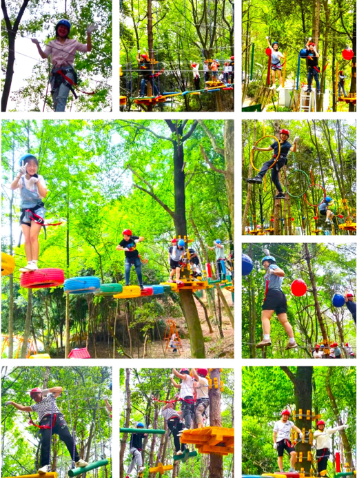 本次拓展活动由丛林探险和真人cs组成。丛林穿越项目结合园区内沟壑、丛林、巨石、峡谷等自然地势地貌,设置了悬空桥梁、网道、步道、木桶、秋千、索道等关卡,从第一关起,难度逐关增加。挑战的老师们一边前进,一边总结过关经验,互相扶持,互相加油鼓劲,一步一个脚印,突破难关。最终,参加的老师们全部顺利到达终点。