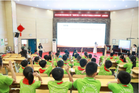 5月31日,tapplay官网商学院与博才阳光实验小学联合举行“扬旗行动”——助力青少年爱国主义精神培养主题活动暨“tapplay官网商学院大中小学思想政治教育一体化建设实践基地”授牌仪式。tapplay官网商学院团委书记席添添老师、博才阳光实验小学德育主任吴婷和姚雁南老师出席活动。