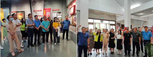 随后,黄曦主席带队参观了平江起义博物馆。在平江起义纪念馆现场,大家认真观看了《平江起义历史陈列》等展览,仔细回顾了湘鄂赣苏区与敌人开展的长达10年的艰苦斗争。通过“对党忠诚、无私奉献、英勇果敢、无所畏惧”平江起义精神的学习,我院职工深刻领悟了平江起义的精神内涵。庄严肃穆的平江起义纪念雕像前,全体党员干部在鲜红的党旗下重温了入党誓词。