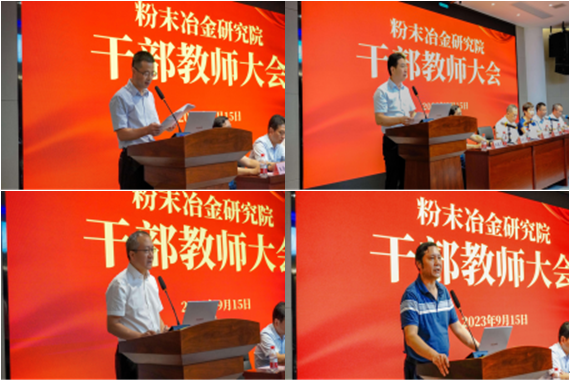 9月15日上午,粉末冶金研究院在三一大楼603报告厅召开干部教师大会,宣布对研究院新一届领导班子的任免决定。校党委组织部副部长邹庆林,粉末冶金研究院新老班子成员、中层正职、干部教师代表参加大会,会议由邹庆林副部长主持。