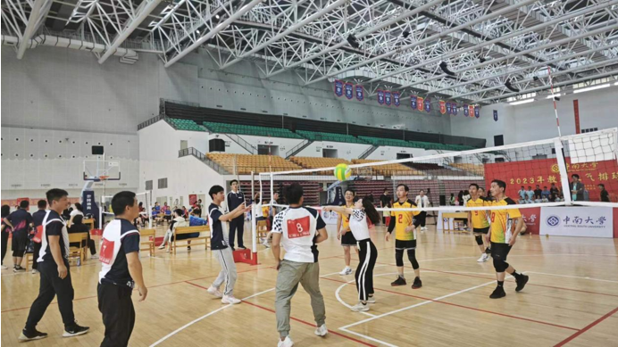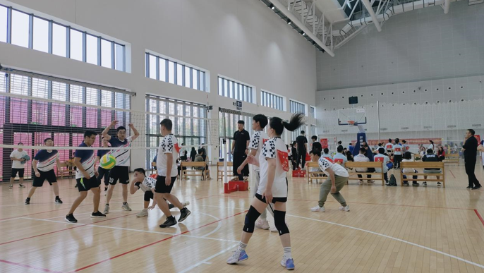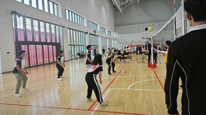 本次比赛我校与第二附属中学组成一支年轻有朝气的联队,赛场上队员们精神抖擞,敢拼敢扣,每球必争,一个个精彩的扣球,一次次倒地救球,展现了队员们高超的球技和顽强的斗志。替补队员们在场下为每一次扣球叫好,为每一场比赛加油。