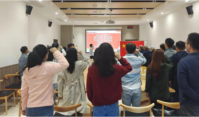 会议伊始,开展老党员带领青年党员重温入党誓词活动。坚定有力的宣誓声,表达老青两代党员不忘初心、砥砺奋进的信念及决心。