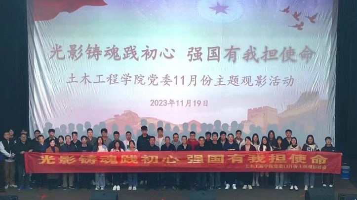 为弘扬爱国主义精神,凝心铸魂,强化党员的使命感、责任感,厚植党员家国情怀,激发使命担当。11月19日,土木工程学院党委、工会组织全体师生、党员及入党积极分子于铁道校区礼堂开展“光影铸魂践初心,强国有我担使命”主题观影活动。
