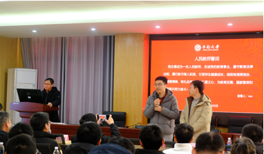 龚涛书记代表学院对两位教师的加入表示热烈欢迎,并强调,作为新时代的教育工作者,应坚定理想信念,涵养高尚师德,不忘立德树人初心,切实担当为党育人、为国育才的光荣使命,牢记誓词,严格要求自己,努力成为“四有”好老师。