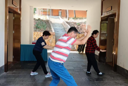 在松柏成荫、鸟语花香的书院,离退休同志们欢聚一堂会老友、赏美景、品美食、拍美照、阅群书,分享着退休后老有所乐、老有所为的幸福生活。年逾古稀的徐纪成老师,身板挺直,精神矍铄,他即兴表演了一段太极,一招一式,如山川起伏,如江河奔腾,绘就一幅天地间的和谐画卷,随即就有老师投入到学太极行列中,在重阳这个重要的传统节日,留下一份宝贵的传统文化记忆!