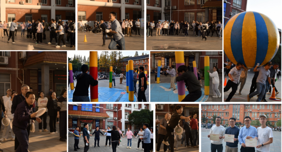 在“精打细算”项目中,各队队员争分夺秒,你追我赶,场面紧张而刺激。最终,钢铁队凭借其出色的发挥获得了该项目的冠军。“趣味飞盘”项目则要求参赛者不仅要具备良好的投掷技巧,还要有较强的平衡感和预判能力,经过激烈的角逐,生物队凭借其精准的投掷成功夺得该项目冠军。“屹立不倒”项目需要发挥团队协同能力、战术策略和动作协调性,在限时时间内完成指定动作并维持充气棒不倒地,钢铁队凭借其出色的团队配合和稳健的表现,以微弱优势获得了该项目冠军。此外,“鸿运当头”和“同心协作”两个项目分别由矿物队和机关-无机联队获得冠军。这些项目不仅让教职工们在轻松愉快的氛围中锻炼了身体,还增进了彼此之间的友谊和信任。