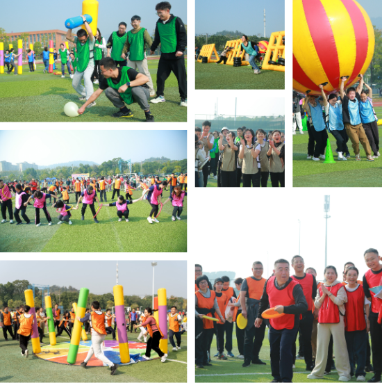 此次趣味运动会设置了精打细算、趣味飞盘、同心协作、鸿运当头、屹立不倒五个项目。在简单热身后,比赛正式拉开了帷幕。比赛过程中,参赛队员们精神饱满、斗志昂扬,在各队队长带领下齐心协力、顽强拼搏,既为部门单位的荣誉而战,也努力争取代表机关部门工会征战学校趣味运动会的比赛资格。场下队员和观众们高声呐喊,为参赛选手加油助威,现场气氛热闹非凡,欢声笑语此起彼伏。
