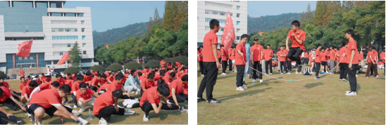 在学院学生干部的带领下,大家进行了登山前的热身活动,师生们认真地活动着身体的各个部位,为即将开始的登山活动做好充分准备。热身活动后,进行了接力跳绳、海底传月等趣味游戏,现场气氛十分活跃。