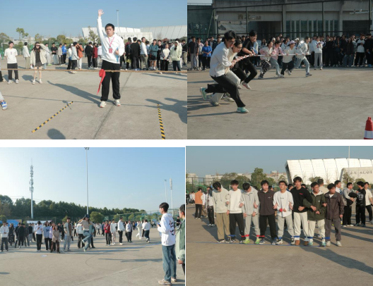 比赛的第一个项目是“力拔山河”,它不仅是力量的见证,也展现了良好的团结氛围。场上的同学齐心聚力拉紧一根绳,场下的同学呐喊助威声彻云霄。