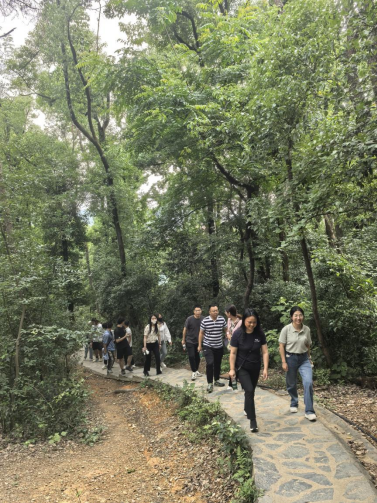 本次活动精心设计两条路线,兼顾不同体能需求。集体路线以图书馆为起点,经云麓山庄至悟凡茶轩,沿途风景秀丽,教职工们漫步其中,一边欣赏着岳麓山的自然风光,呼吸着清新的空气,一边交流着工作与生活中的点滴。完成首段行程后,精力充沛的参与者选择进阶挑战,从悟凡茶轩旁的肖劲光铜像纪念园开启第二阶段征程。该路线串联长沙会战碑、观光长廊至岳麓山电视塔,往返全长约5.2公里,形成“历史-自然-人文”三位一体的沉浸式体验。